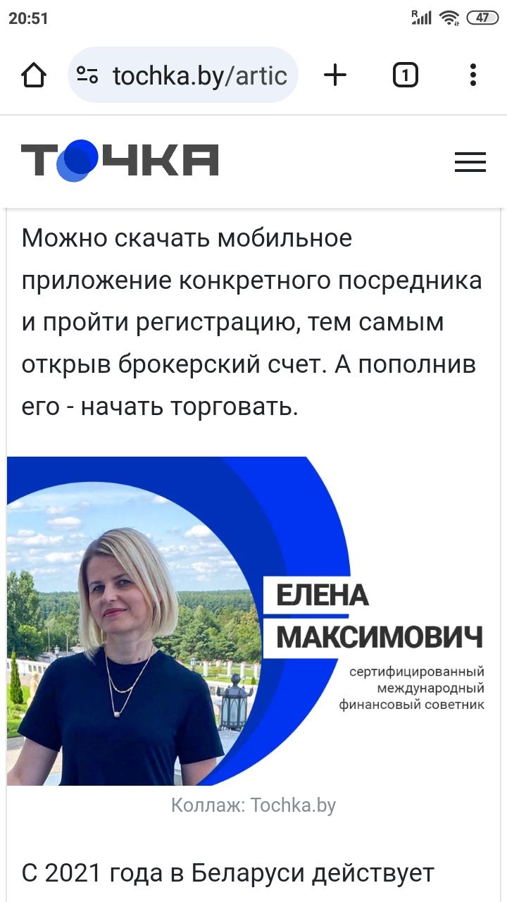 - Автор публикаций и интервью в топовых СМИ: РБК, Беларусь-2, ТНТ-International, Onliner.by, Про бизнес, Myfin.by, Dev.by, Alfabank.by и прочие;