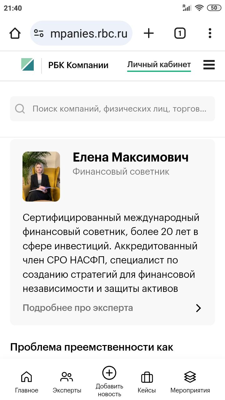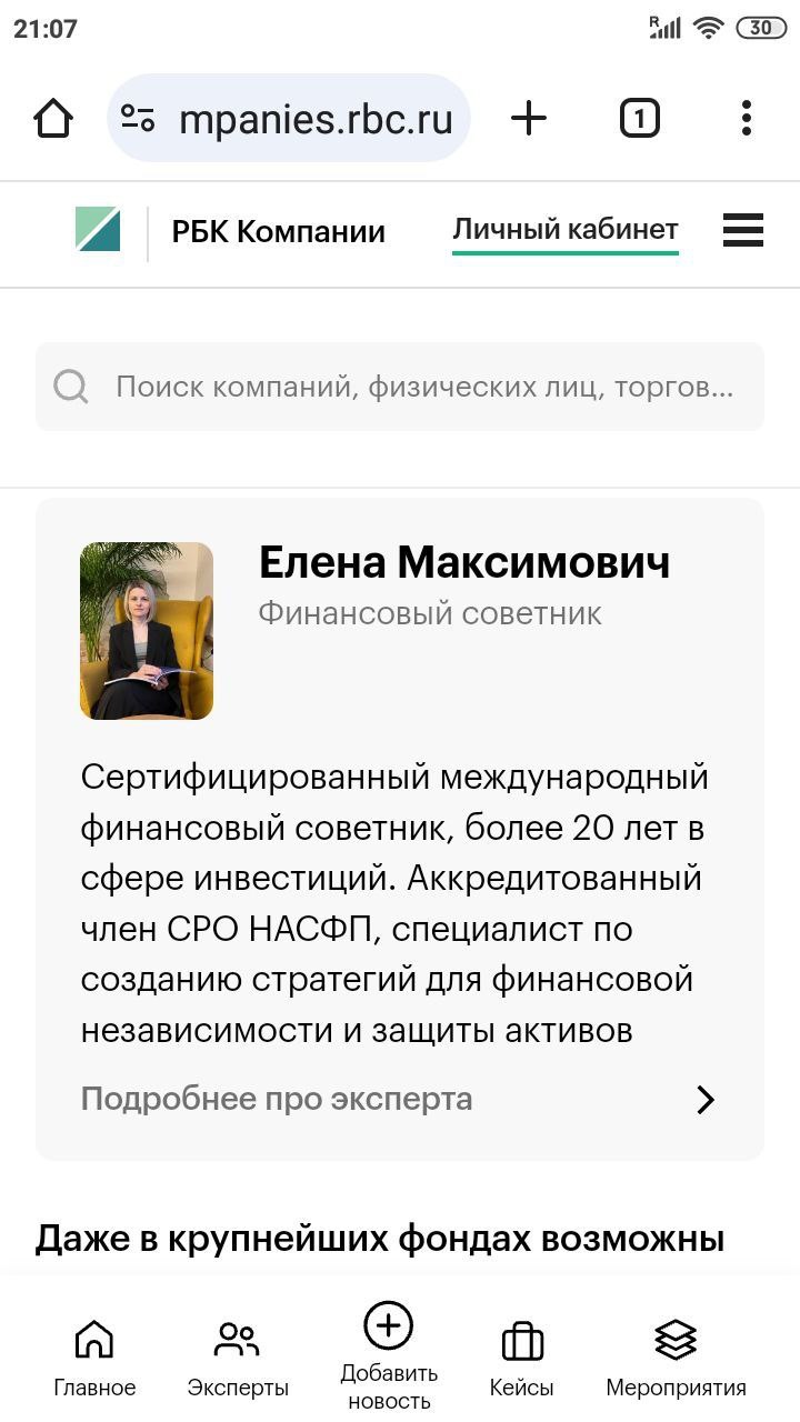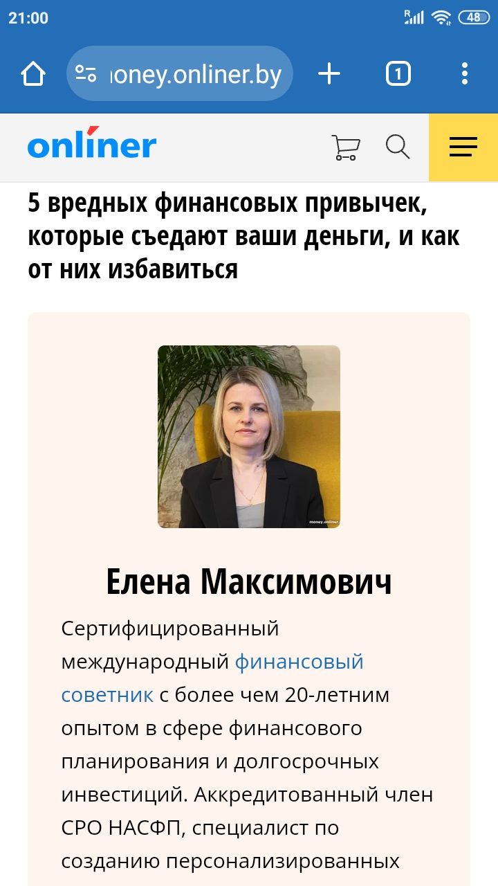Здравствуйте, меня зовут Елена Максимович, я независимый международный финансовый консультант по личному финансовому планированию частных лиц и бизнеса, инвестициям.